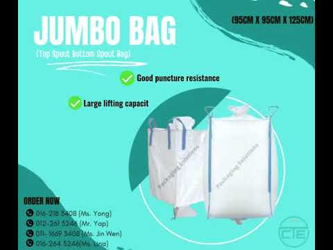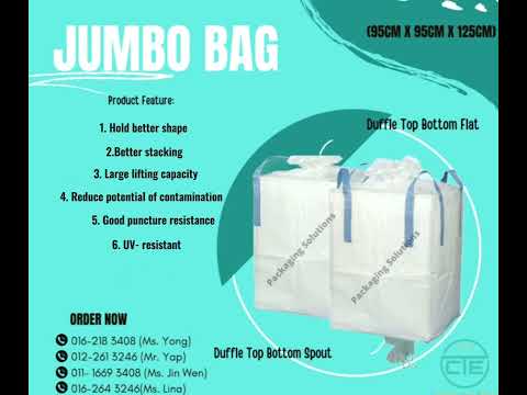 Jumbo Bag (Top Spout Bottom Spout Bag) Contact now 016-218 3408 (Ms. Yong) 012-261 3246 (Mr. Yap) 011- 1669 3408 (Ms. Jin Wen) 016-264 3246(Ms. Lina)
